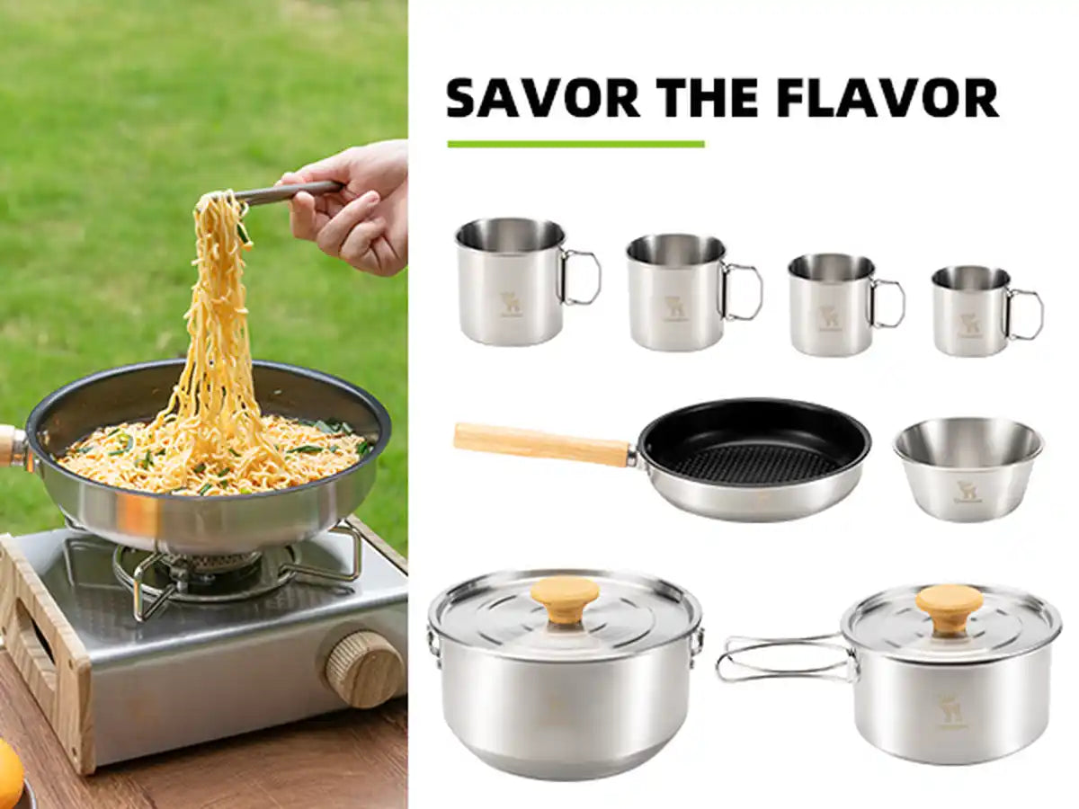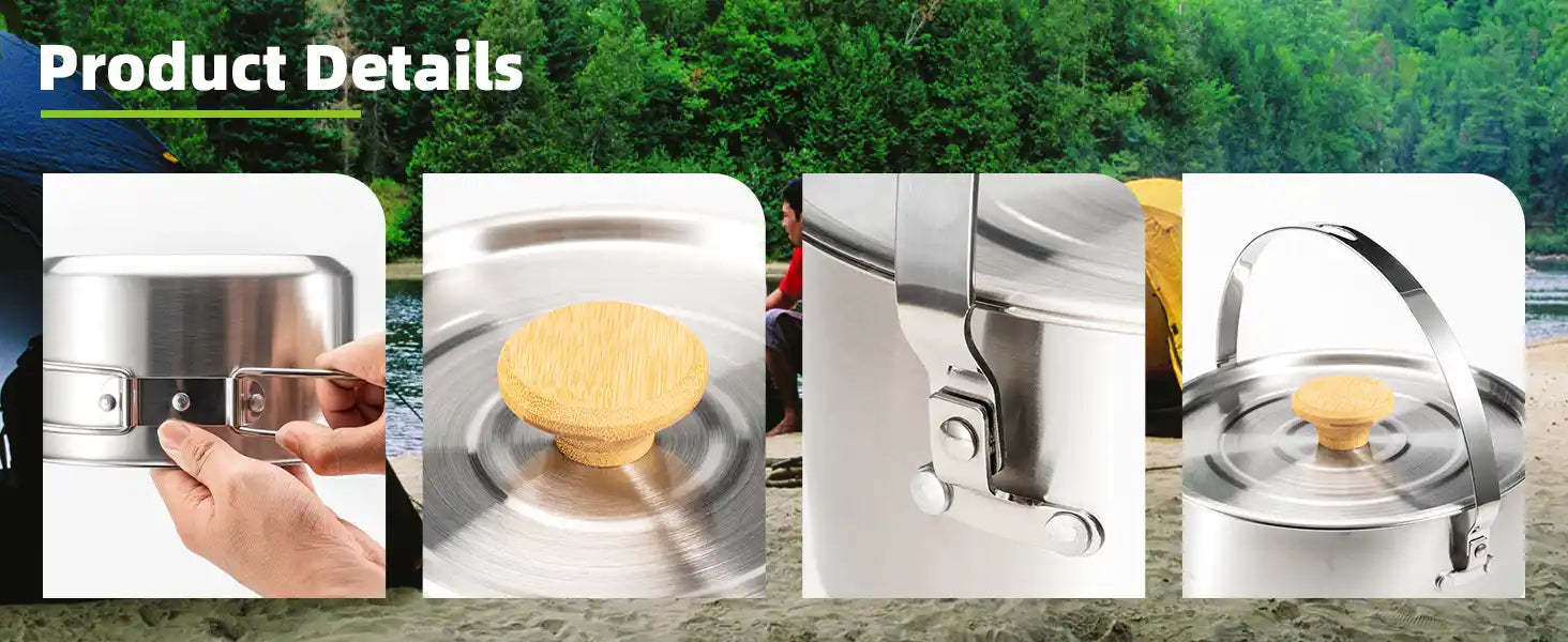 • Versatile outdoor cooking: The set is perfect for cooking outdoors, from simmering soups to boiling water for tea, and offers a comprehensive solution for camping or hiking trips.