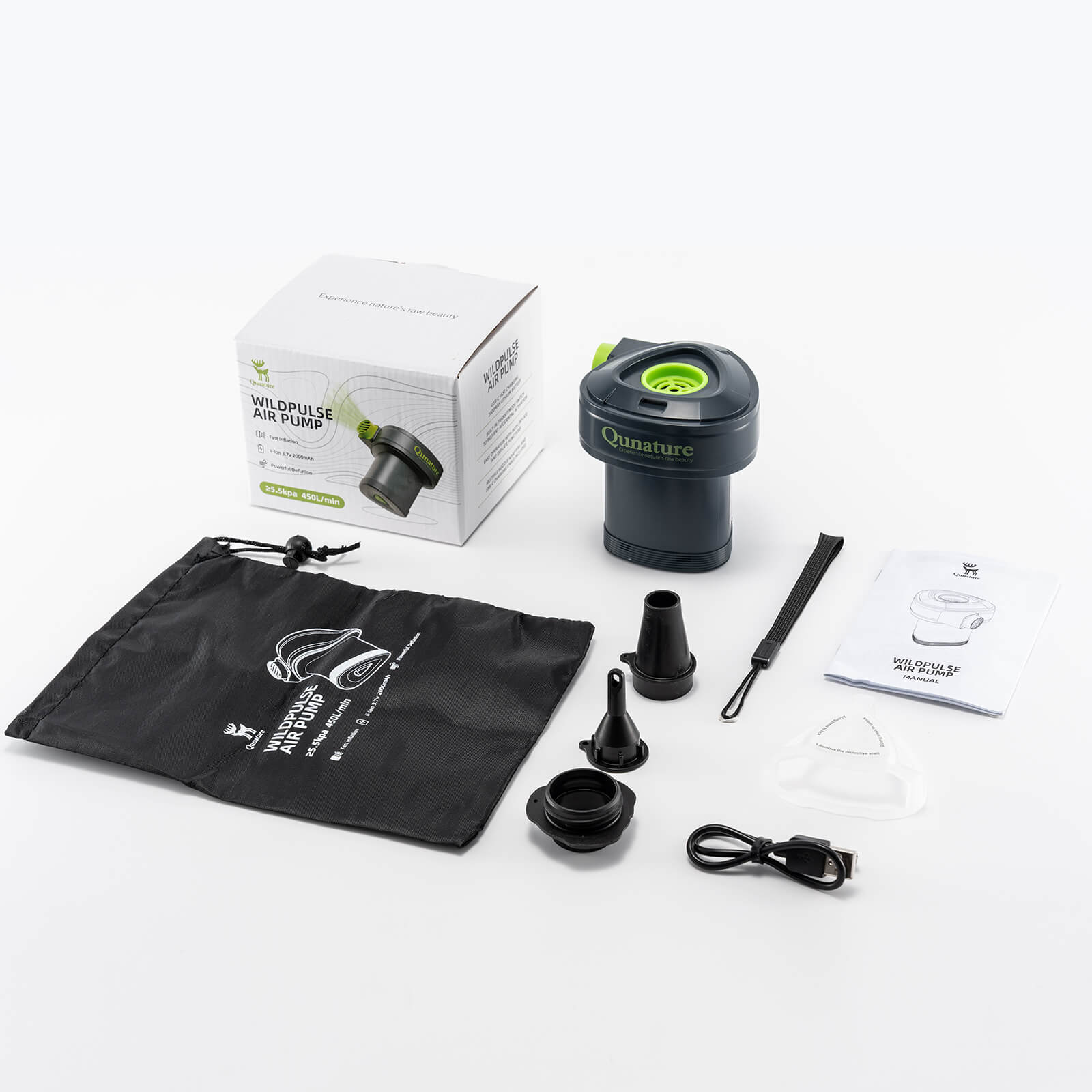 Qunaturn Wiederaufladbare 5 kPa Luftpumpe mit 3 Aufsätzen & Type-C-Ladekabel