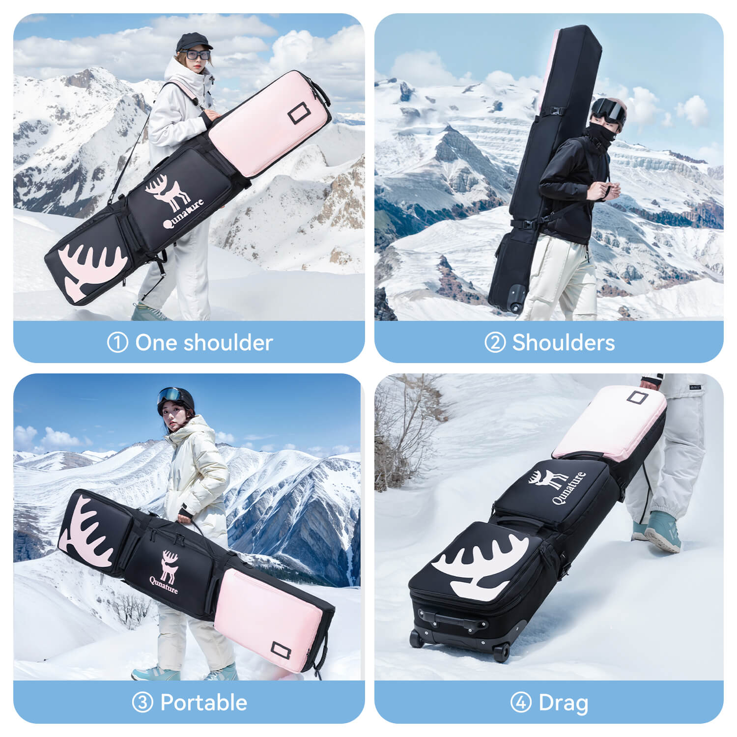 Quick-to-store Snowboard Bag with PU Wheels for Ski, Goggles, Gloves