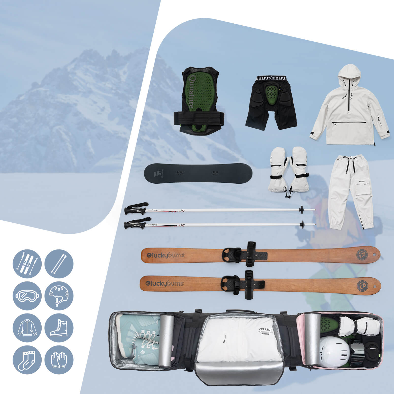 Carry it your way – backpack, shoulder, or tow. Keep your ski gear organized and dry with triple-compartment design.