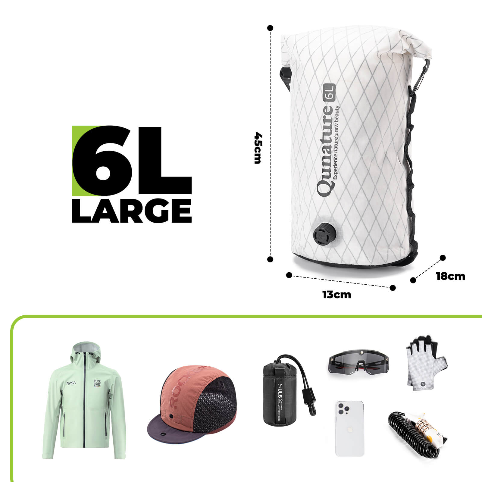Ultra-Leicht & Kompakt: Wiegt nur 109 g (6L) oder 147 g (12L), was dir hilft, Platz zu sparen und das Gewicht deines Fahrrads auf langen Touren zu reduzieren.